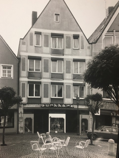 Karl Burkhard erfüllt sich einen Lebenstraum und gründete seine eigene Firma (das erste Herrenbekleidungsfachgeschäft in Aichach) in den Räumen der jetzigen Raiffeisenbank